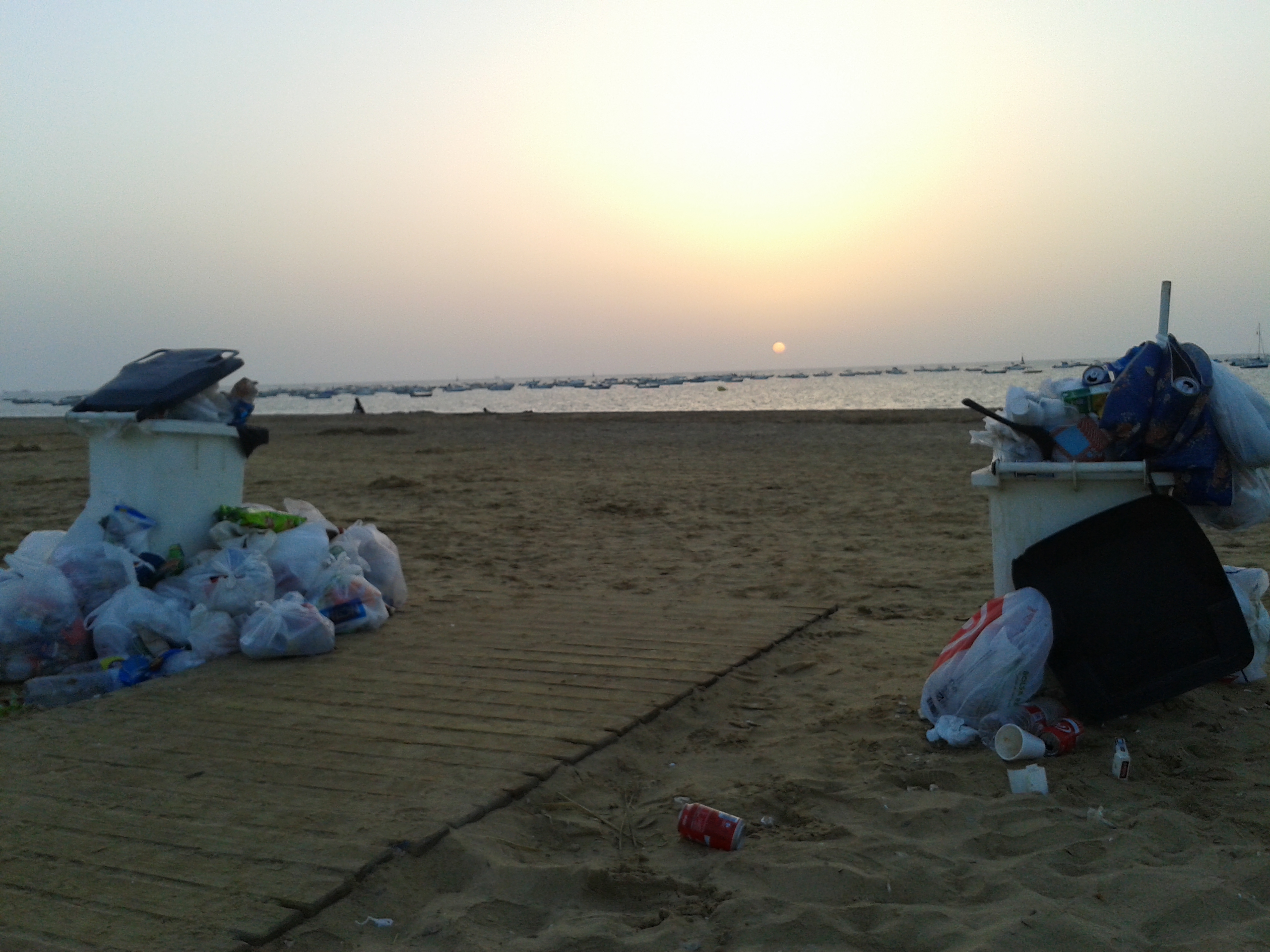 El título se le ocurrió a Andrés García Díaz. Las basuras de Hércules. La foto habla sola. La playa vacía y los contenedores llenos. El final de la rampa o rampla, que de las maneras se oye decir, marca la frontera entre lo que sirve para mañana o ya, mejor, lo tiramos. Nunca falta una sombrilla desvarillada por el viento o una silla rota por la ley que más se cumple, la de la gravedad.