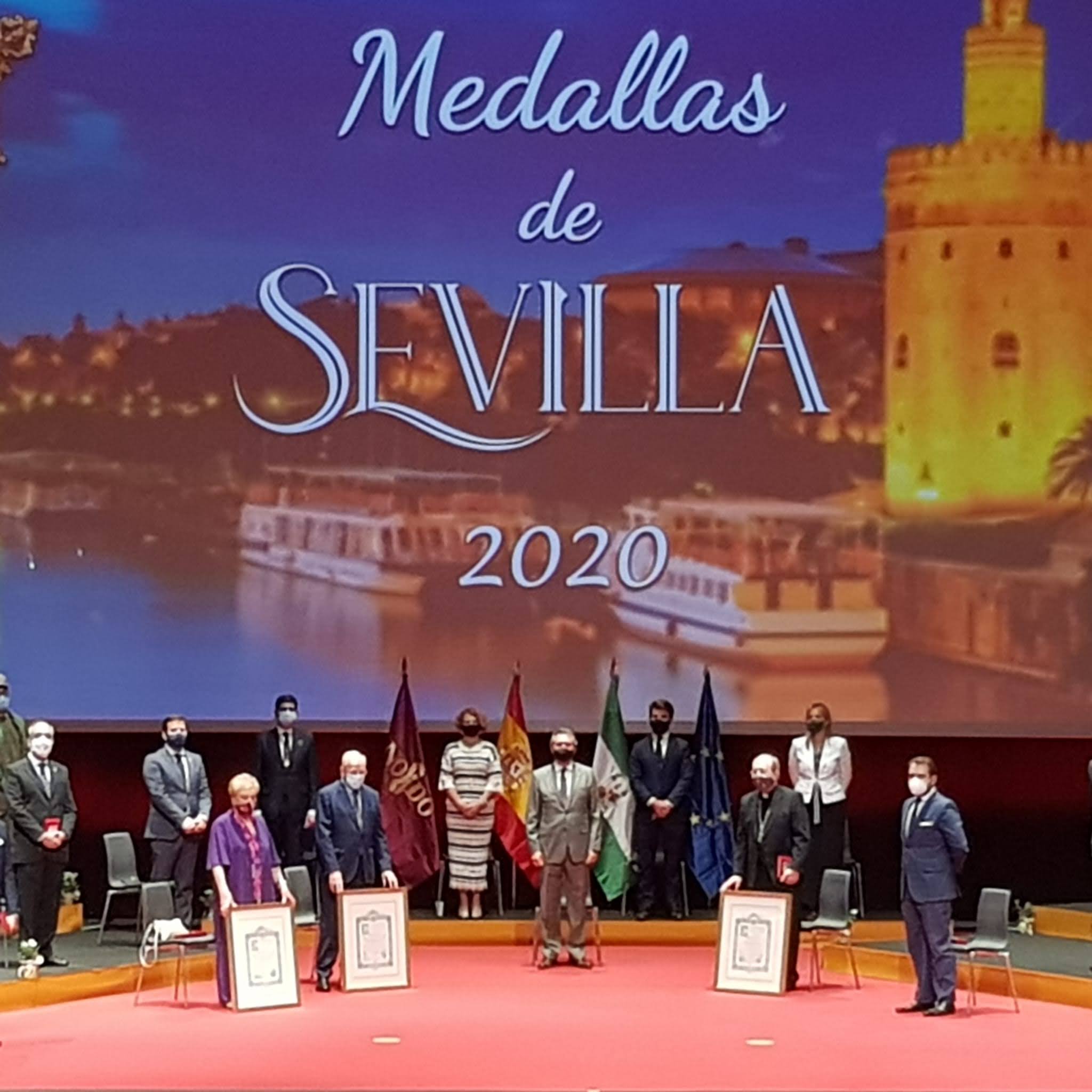 MEDALLA, INSIGNIA Y DIPLOMA. Como se deja leer en el diploma (como libro de reglas), Doña María Ángeles Yruela Rojas recibe, por igual, trato de “Excelentísima Señora” como Excelentísimo es el Ayuntamiento de Sevilla.