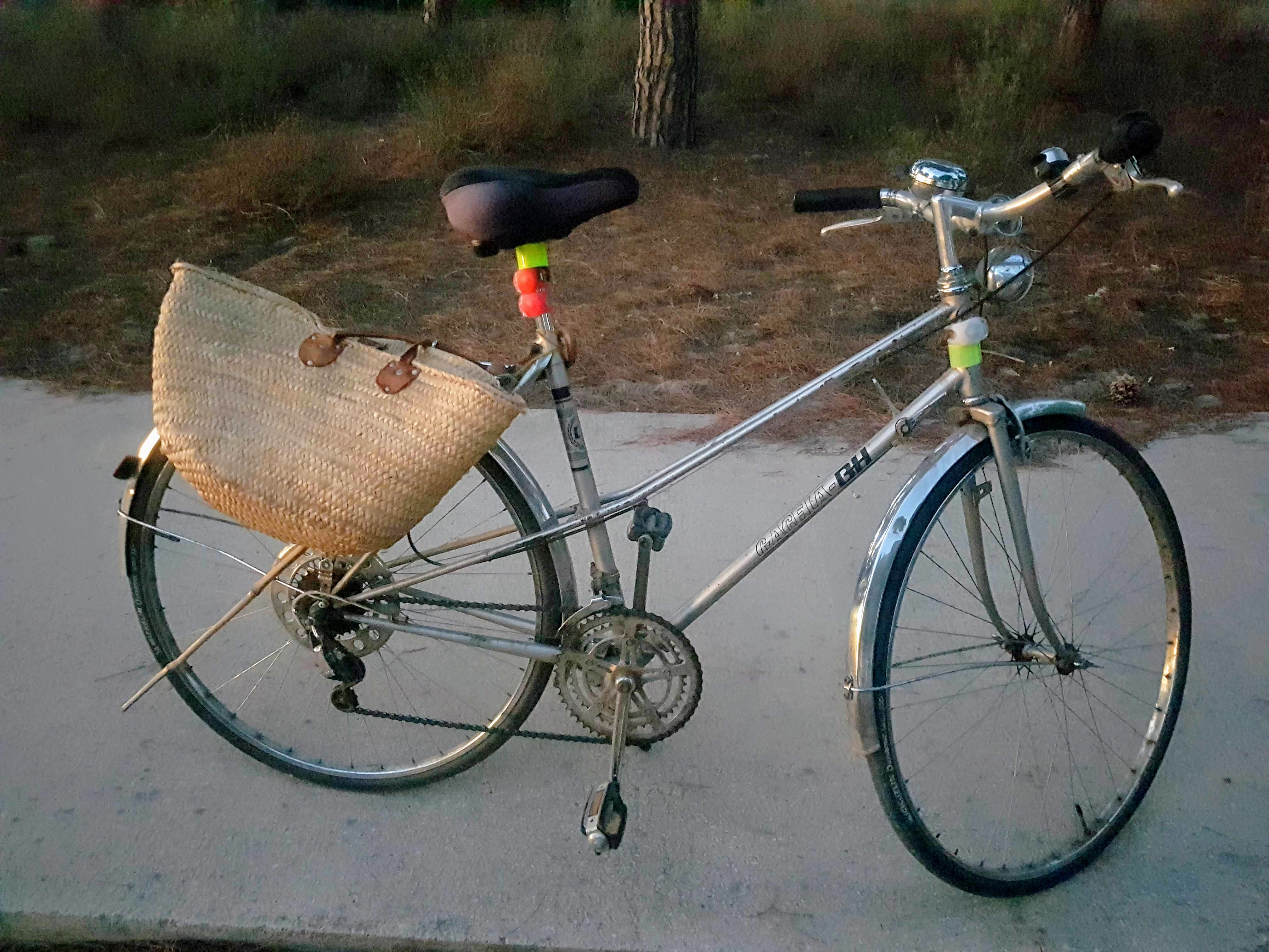 En el plano personal, la bicicleta ha ido marcando mi indumentaria como montura que me ha acompañado y definido durante la segunda mitad de mi vida. No es bicicleta de infancia por el barrio del Arenal. Tampoco mi bici fue la bici de los veranos. Cuando llegué a la bicicleta ya había cumplido mis cuarenta años. La compré en El Jueves, animado por Pilar, quien veía en la bicicleta el vehículo que me pegaba. Era una bicicleta de frenos de varilla a la que puse un nombre que ha durado: La Veloz.
