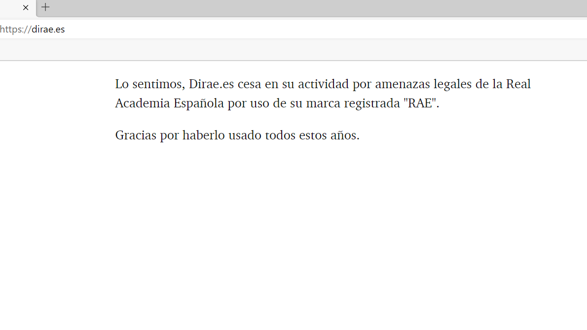 El pasado 10 de noviembre un titular pasó desapercibido. CIERRA DiRAE.ES, EL DICCIONARIO DIGITAL ASOCIADO A PASAPALABRA (El País). MAZAZO PARA LOS CONCURSANTES DE PASAPALABRA. La web Dirae.es se ha visto obligada a cerrar después de que la Real Academia Española lo haya exigido por violar los derechos de propiedad intelectual (El Confidencial).