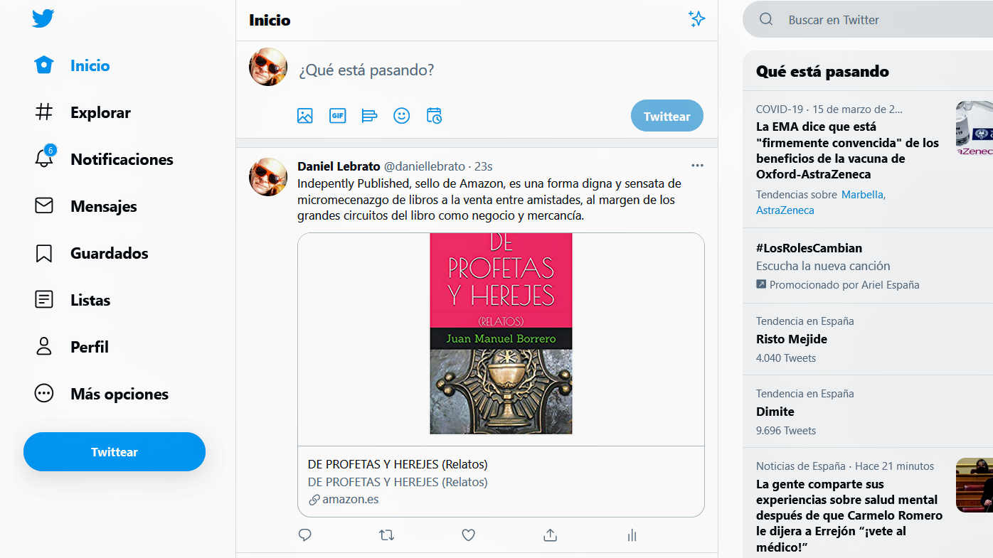 Juan Manuel Borrero, De profetas y herejes (relatos 2021), Indepently Published, a la venta en Amazon (9,36 €) pinchando aquí. Indepently Published es forma de publicar al margen de la gran industria del libro. Micromecenazgo se llama.