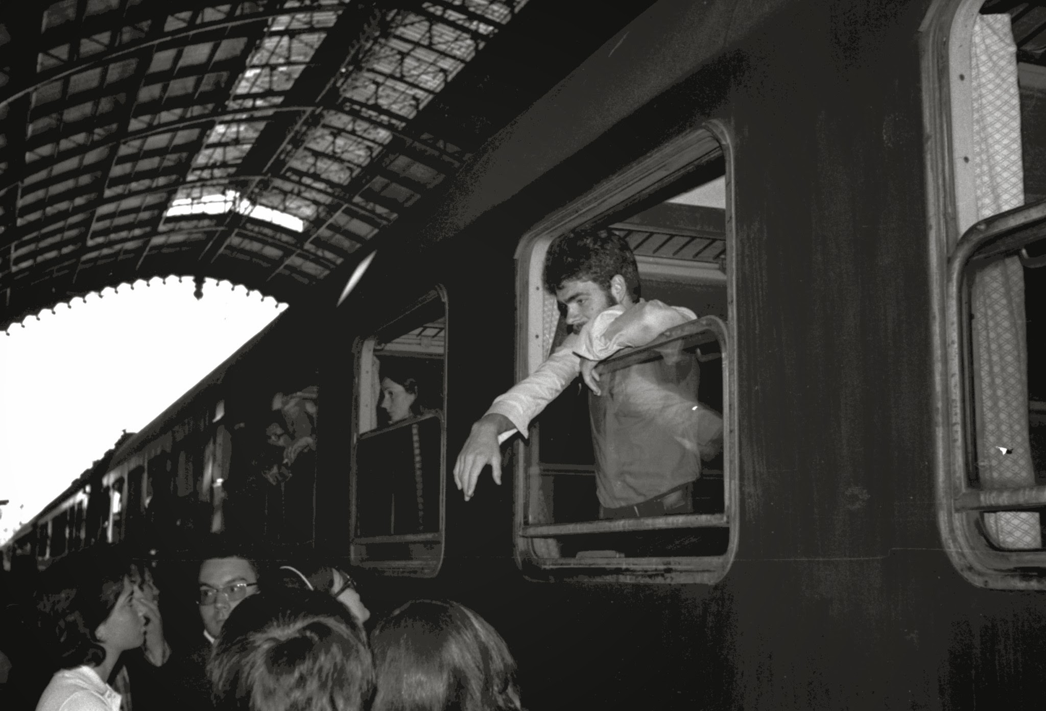 En la imagen, joven español totalmente deprimido ante la mili que le esperaba en Chafarinas, Melilla, África, España. Era el año 1974 cuando la Marcha Verde se veía venir, menos con ojos del glorioso ejército español.