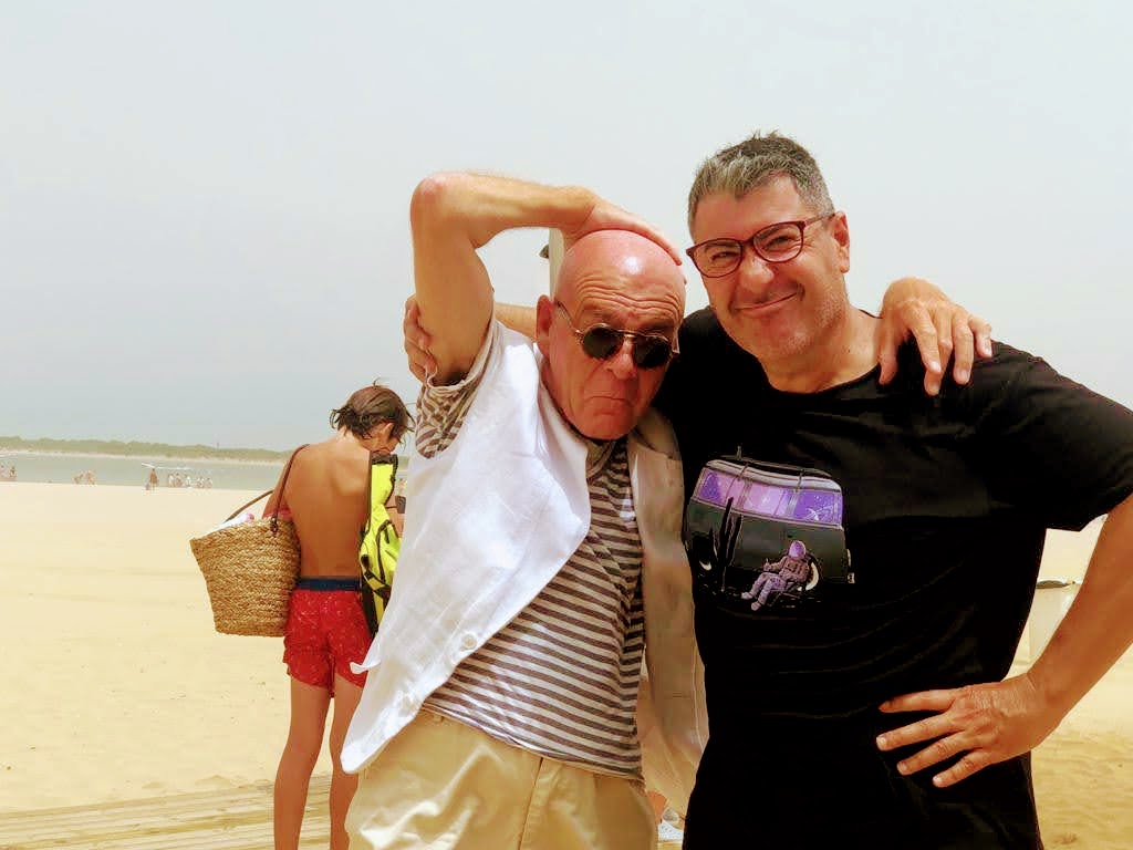 El chiringuito Macario es, por proximidad, el que cubre mis veranos en Sanlúcar de Barrameda. Allí cuidan Cruzcampo y manzanilla a este pejiguera del vaso frío guardián de velador hasta que la familia regresa de la playa a donde fue buscando la marea. En esa mi soledad estaba ayer domingo cuando, por la rampa o pasarela de madera camino a la playa, pasa, entre el trasiego de gente, Dionisio Miguens Caballero, antiguo alumno en el Ibé 20 de Sevilla: