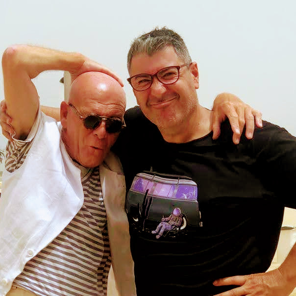 Lo que no cuenta Dionisio (nombre griego que se consagra a Dios en la adversidad, o al dios del vino, que viene a ser lo mismo), discreto él, es que el Lebrato andaba recitando o leyendo en alto libro que fue en su día Tinta de calamar. Es para una reedición en libro de bolsillo -dije al Dioni-, algo que estoy preparando para leer en pantalla —Cuando este llegue a la edad de tener su móvil -yo señalando al joven Daniel, de 11 años, quien nos acompañaba y nos hizo la foto.