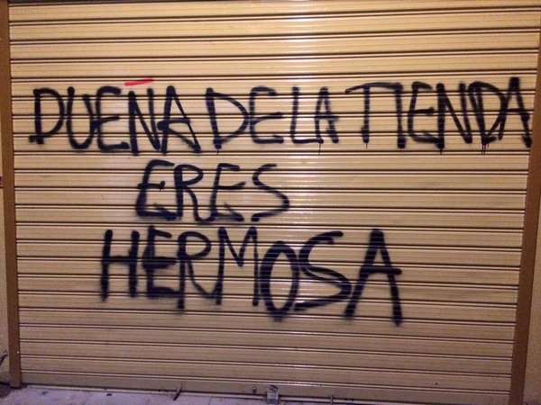 Tiene Alvarito la costumbre de mandarme fotos cuando anda por Granada, provincia o capital. La más célebre fue aquella persiana pintada que decía Dueña de la tienda, eres hermosa (que pueden ver pinchando aquí).