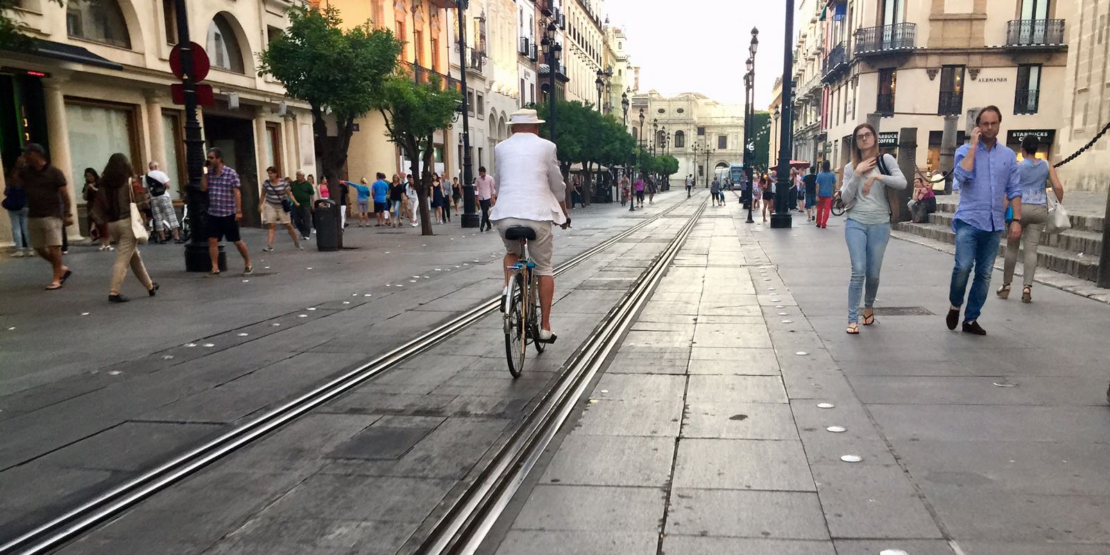 Entonces, bien, me dije: Nada que ver con la bicicleta por el centro, que es lo que se practica y se ve hacer en Sevilla por zonas peatonales. (Foto, año 2017:)