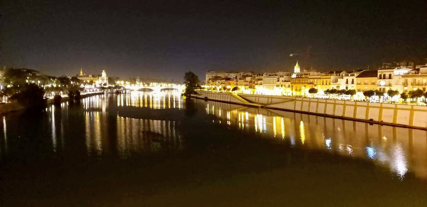 un paseo: Sevilla desde Triana, Triana desde Sevilla, de puente a puente: del de Triana al de San Telmo (circuito ampliable: desde el de la Expiración o antigua Chapina al de Los Remedios). Este paseo es bueno a todas horas, también se puede hacer por bajos del paseo de Marqués de Contadero, borde al mismísimo río.