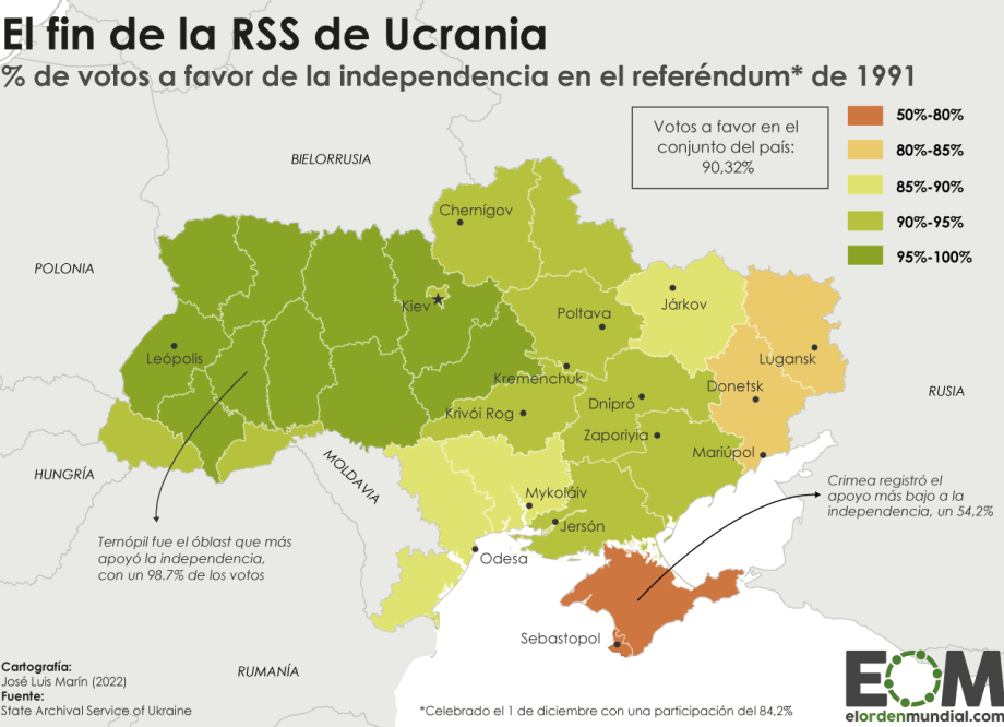 La caída repentina y totalmente inesperada de la URSS en 1991 reveló la naturaleza del Estado, creado en base al Gran Terror de Stalin. Lo que Ucrania no consiguió durante el colapso del Imperio Zarista, pudo alcanzarlo durante el colapso de la Unión Soviética. Consiguió entonces separarse, como otras 14 mayores naciones no rusas. Al declarar su independencia nacional, asestó un golpe decisivo al imperialismo militar burocrático ruso.