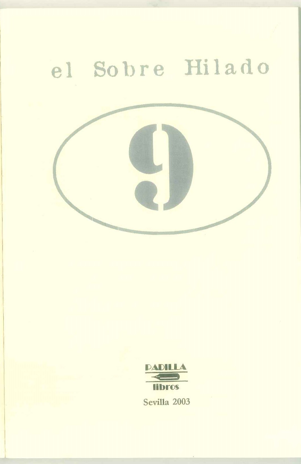 Pasarían dos años y en 2003, jueves 12 de junio, se presentó en calle Feria, entre El Taller y Padilla Libros, el último Sobre Hilado, revista libro con vocación y número de delantero centro, con el 9 a la espalda y con nueve voces: Abelardo Rodríguez, Adrián González da Costa, Agustín María García López, David González Lobo, Diego Vaya, Félix Morales Prado, Juan Drago, Paloma Fernández Gomá y Víctor Jiménez.