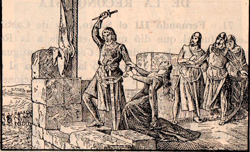 Pues la cosa, según cuenta el Freile Don Diego, difiere de lo que se cuenta en los cronicones oficiales (oficiales y retocados, al parecer) y que, en resumen, vienen a decir que el infante Don Juan, hermano del Rey Sancho, aliado por despecho con los moros, por hacer mal a su hermano, amenazaba a Don Alonso Pérez de Guzmán, alcaide de la plaza, con asesinar a su hijo, a quien retenía en su poder, si no se les entregaba la plaza. El muchacho Pedro Alonso, hijo primero del hidalgo don Alonso Pérez de Guzmán, mostró, ya desde mozo, una tendencia irrefrenable a enfollonar, a los lances del juego y de la espada, a desenfrenos en pajares y burdeles hasta poner en serio aprieto el nombre y el honor de su apellido. De nada sirvieron las súplicas y oraciones de su piadosa madre, ni las adustas reprimendas de su honrado padre, que intentó alejarle, cuanto pudo, de la nefasta influencia del infante, compañero inseparable de juergas y de lances. Por eso, vieron como una digna salida a los desmanes, la decisión del mozo y del infante de alistarse en las huestes de un noble caballero castellano, enfrascado en mil batallas con los moros. Serenaron el ánimo, pensando que aquello salvaría al mozo de un destino descarriado; pero, cuando Tarifa fue cercada, descubrieron con horror que, entre los moros principales que caminaban al frente de aquella jauría enfebrecida, vestidos a la cora, con seda y collares, como puras barraganas, no había duda, para auténtico bochorno, destacaban, entre todos, Pedro Alonso y el Infante cogidos por la cintura, comiéndose la boca, entre risas, como putas del arroyo. Don Alonso no pudo soportar el escarnio y, rojo por la ira, lanzó su daga con la decidida intención de atravesarles la garganta. Pero el cielo no quiso concederle ni siquiera el alivio de lavar con sus armas la infamia infringida por aquella alimaña que parecía reírse de todo ante sus barbas. No se supo más de los amantes. Se decía que alguien les había visto alguna vez por la casba de Fez. Con todo ello, don Alonso de Guzmán entró en una especie de tristura permanente que no logró atenuar ni el piadoso retoque de la historia en el que parecía salir airoso y bien parado. Es más, cuando se popularizó el apodo de Guzmán el Bueno, al oírlo, le subía una especie de sonrojo hasta las cejas.