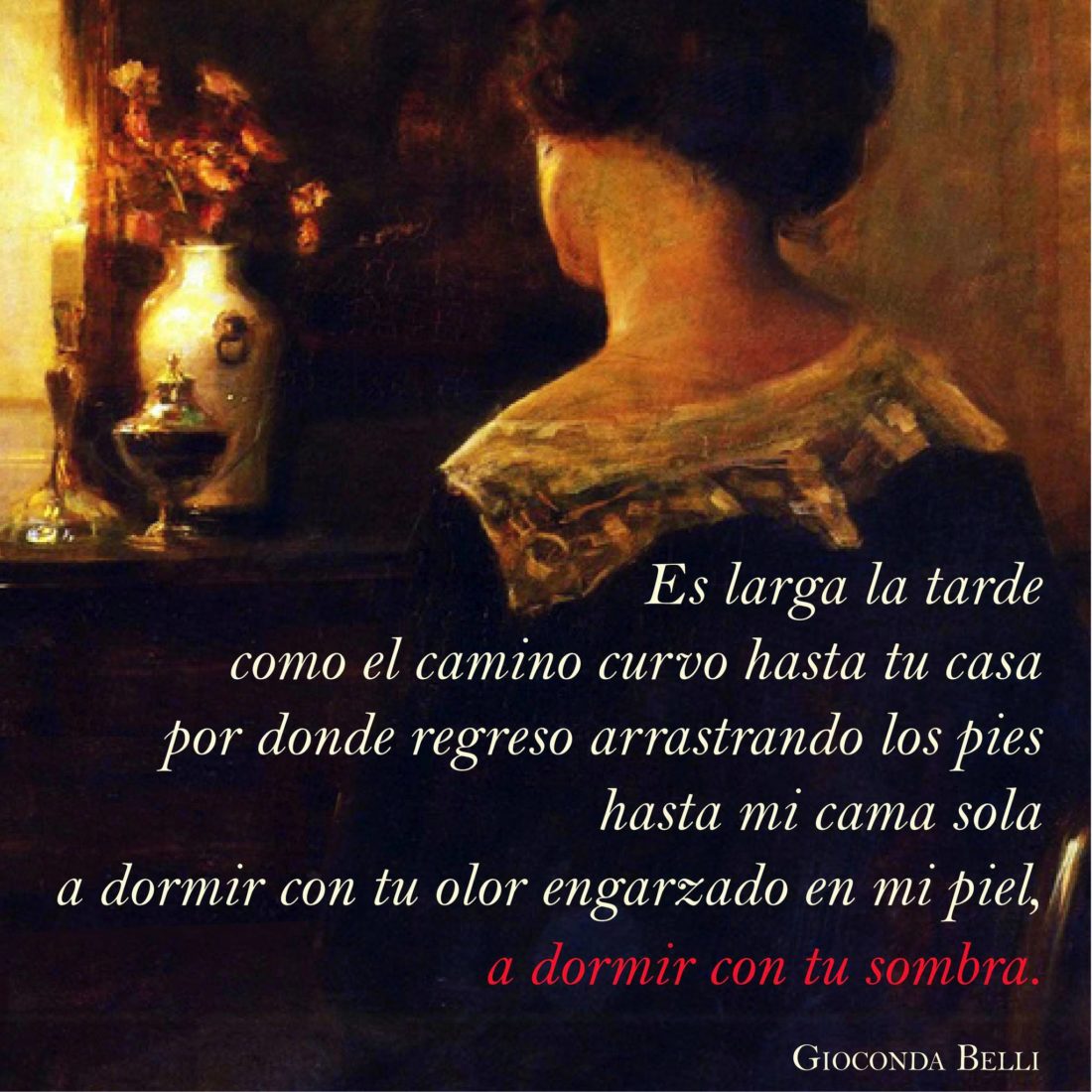 Nacida en Managua (Nicaragua) el 9 de diciembre de 1948, Gioconda Belli es hija de una mujer que poseía modernas concepciones para la época, lo que ha sido determinante para la configuración de la esencia que recorre su literatura. Tras su estancia en Madrid y la finalización de sus estudios de publicidad y periodismo en Usa, Belli retorna a Nicaragua para unirse a la causa sandinista; etapa que coincidió con la composición de sus primeros poemas, que destacaron por su revolucionaria manera de abordar el cuerpo y la sensualidad femenina. La gran acogida que tuvieron desembocó en la publicación de Sobre la grama (1972), obra a la que le han seguido títulos tan notables como La mujer habitada (1988) o El infinito en la palma de la mano (2008). Su actividad política la ha llevado al exilio en varias ocasiones, permeando de libertad una producción literaria que le ha otorgado múltiples reconocimientos, entre los que destacan el premio de poesía Generación del 27 (2002), el Jaime Gil de Biedma (2020) o el prestigioso Reina Sofía de Poesía Iberoamericana (2023).