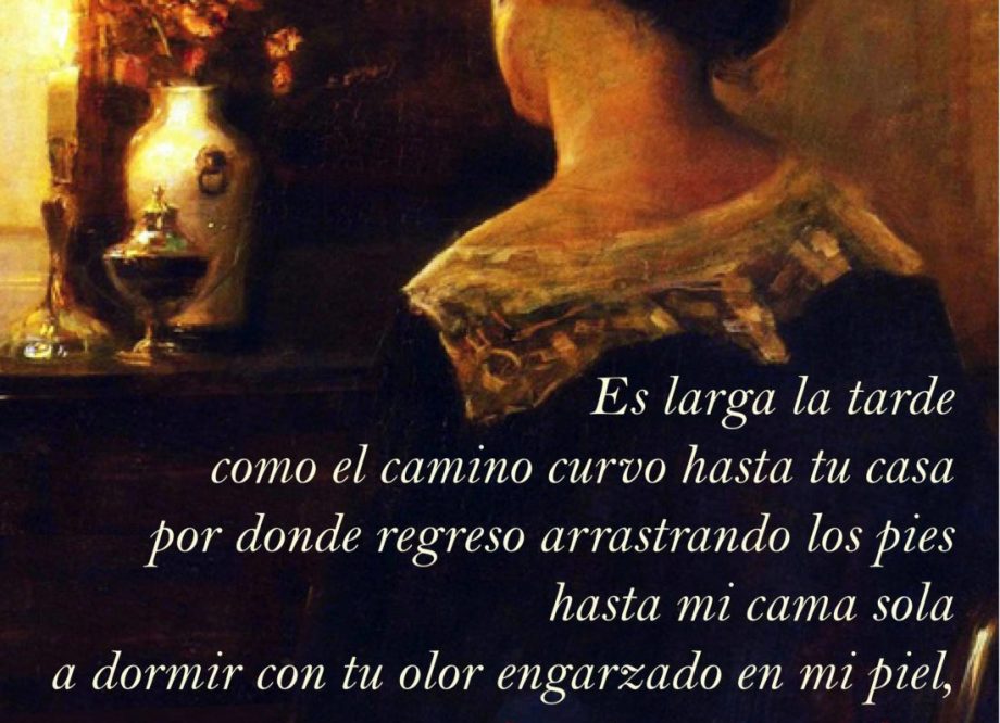 Sean mis manos como ríos entre tus cabellos. Mis pechos como naranjas maduras. Mi vientre un comal cálido para tu hombría. Mis piernas y mis brazos sean como puertas, como puertos para tus tempestades. Mi pelo como algodón en rama. Todo mi cuerpo sea hamaca para el tuyo, y mi mente tu olla, tu cañada.