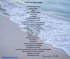 Y Dios me hizo mujer, de pelo largo, ojos, nariz y boca de mujer. Con curvas y pliegues y suaves hondonadas y me cavó por dentro, me hizo un taller de seres humanos. Tejió delicadamente mis nervios y balanceó con cuidado el número de mis hormonas. Compuso mi sangre y me inyectó con ella para que irrigara todo mi cuerpo; nacieron así las ideas, los sueños, el instinto. Todo lo que creó suavemente a martillazos de soplidos y taladrazos de amor, las mil y una cosas que me hacen mujer todos los días por las que me levanto orgullosa todas las mañanas y bendigo mi sexo.