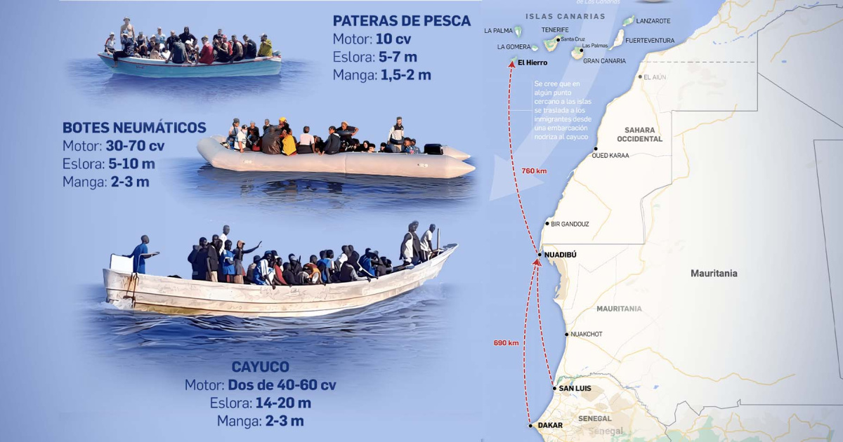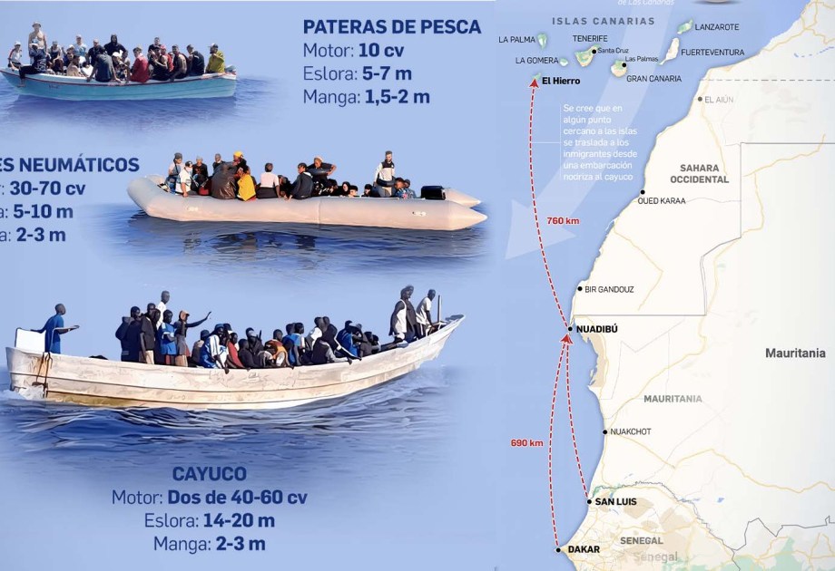 cayucos y pateras, las dos son embarcación pequeña, de fondo plano y sin quilla. Para la patera, el diccionario añade: usada para el transporte de inmigrantes ilegales. Ante la migración ilegal, almas de cántaro siguen el rastro de telediarios contra mafias por tráfico de personas. (Querrán que migrantes migren en Ave o en Airbús.) Lejos de análisis simplistas, hay quien cae en la cuenta del valor de la migración legal o ilegal como mano de obra de reserva o como activa que habrá que incorporar junto a la mano de obra nacional; punto de vista económico o laboral igual al que tuvieron antepasados esclavistas y coloniales, quienes vieron en la esclavitud la mano de obra que trae más cuenta que ninguna. Quiero decir: hay quien, por salvar la emigración, razona -sin serlo- como empresario capitalista o como ojeador para un valor de cambio o mercancía. Y digo yo que algo tendremos que lucubrar para recomponer nuestro mundo, algo global y acorde con quien cuestiona cómo se formaron las fronteras, quiénes las decidieron y quiénes se aprovecharon y se aprovechan de esas líneas divisorias. Y habrá que atender a todas las fronteras, también las figuradas, empezando por lo que se llama trabajo o línea de trabajo o de riqueza, primera y principal frontera o meridiano que nos divide a los de dentro y a los de fuera, a nacionales y a extranjeros. Mientras el trabajo no rompa el maleficio de su etimología [trabajo : tortura] y mientras el valor de cambio de la hora de trabajo no se pague por lo que cuesta hacer ese trabajo sino por su nivel de estudios, que es bajo o muy bajo para subir al andamio, bajar a la mina, cuidar ancianos, sembrar el campo, coger la fruta o la cosecha o recoger basuras, y mientras se pague más por el nivel de estudios, ni nuestra educación ni nuestra sociedad tendrán mucho remedio, lo que es lo mismo con migrantes o sin migrantes. Trotskismo o marxismo están en nuestro adn para algo. Se llamaba revolución permanente o internacional y era contraria a las patrias y a las guerras y se llamaba (antes de internet y de la inteligencia artificial) revolución científico técnica. Radovan Richta la llamó civilización en la encrucijada (1963), que es palabra de cruce o de cambio de agujas y de costumbres. Hay que cambiar de modos o de modas y no seguirle el rollo al telediario dominante. Así pues, arriba o que viva el trabajo o quien lo trabaja, lo cual puede que hasta nos duela como profesores o como abogados que hemos sido, porque le quita alas o el vuelo a quien dice yo soy estudiante o tengo tal título o dice tal mérito quien vive de hacer la carrera o del arte o de la fiesta o de la cultura. Tocar el tema cayucos y pateras, tocar el tema migración, es tocar nuestro currículo y un volver a empezar, como un play it again, Sam, a nuestro antes de haber sido.
