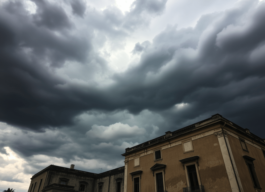 Allá, por la parte de Torrealta, venía una oscuridad misteriosa, pero sin una nube, como si el cielo se hubiera teñido de un tono añil transparente Un aire fuerte comenzó a moverse de súbito y revolvió las copas de los olivos, levantando entre las encinas un polvo blancuzco y denso. Era un aire cálido, sofocante, como el aliento de una hoguera. La cumbre de la sierra se tiñó luego de un color cárdeno. En la misma sombra se fueron envolviendo los valles, y al nublarse el sol, cesaron los rumores, el canto de los pájaros y reinó una calma sorda y aterradora. Luego, todo el cielo fue una mancha violácea, negruzca, levemente diáfana Era esto un silencio de muerte, un sosiego total, una suspensión de la vida. Sólo el aire, levantando remolinos de vez en cuando y haciendo cimbrear las ramas de los árboles, daba la sensación de una vida misteriosa alentando invisible en aquella calma. No llovía tampoco. Sólo unos goterones gruesos y fuertes golpearon la tierra un momento y dejaron un olor acre de polvo mojado; pero de pronto súbito, instantáneo, rasgó el cielo un relámpago, y un trueno seco, rápido, restalló encima como el trallazo de un látigo gigante. Se sucedían los relámpagos, bengalas intensas que cegaban un instante los ojos y parecían chasquear con un olor metálico. A continuación truenos fragorosos parecían socavar los cimientos de la casa y rajar las corpulentas encinas. (capítulo 31 de «La sangre de la raza» (1919), de Antonio Reyes Huertas)