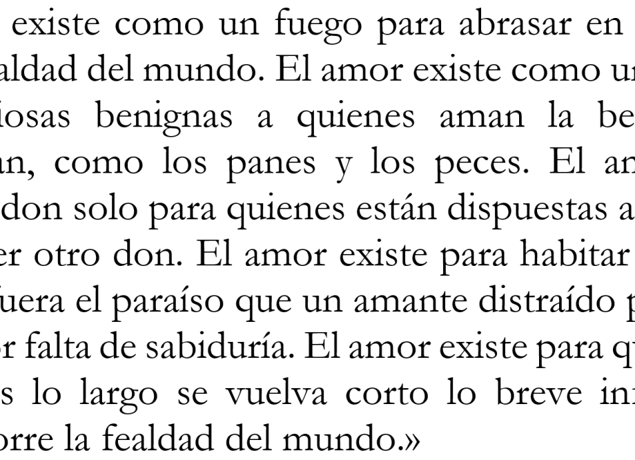 Texto patrón: «El amor existe como un fuego para abrasar en su belleza toda la fealdad del mundo. El amor existe como un presente de las diosas benignas a quienes aman la belleza y la multiplican, como los panes y los peces. El amor existe … Continúa leyendo Comentario de un texto defraudado.